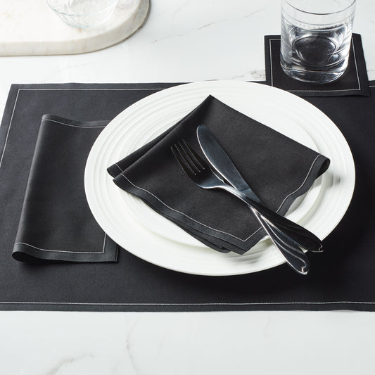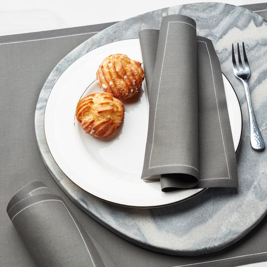 Nuestros individuales y servilletas 100% algodón y lino se presentan en un rollo precortado y son lavables.